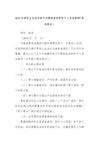 2024年度民主生活会班子对照检查材料和个人发言提纲(参考样式)