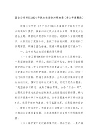国企公司书记2024年民主生活会对照检查(含上年度整改)