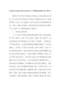 xx副书记2024年民主生活会个人对照检查材料(四个带头)