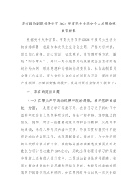 某市政协副职领导关于2024年度民主生活会个人对照检视发言材料