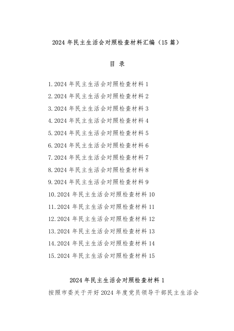 (15篇)2024年民主生活会对照检查材料汇编