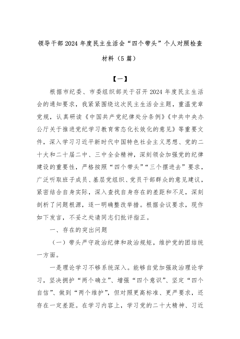 (5篇)领导干部 2024 年度民主生活会“四个带头”个人对照检查材料