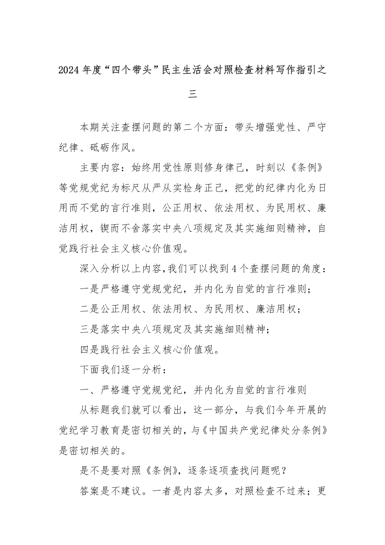 2024年度“四个带头”民主生活会对照检查材料写作指引之三