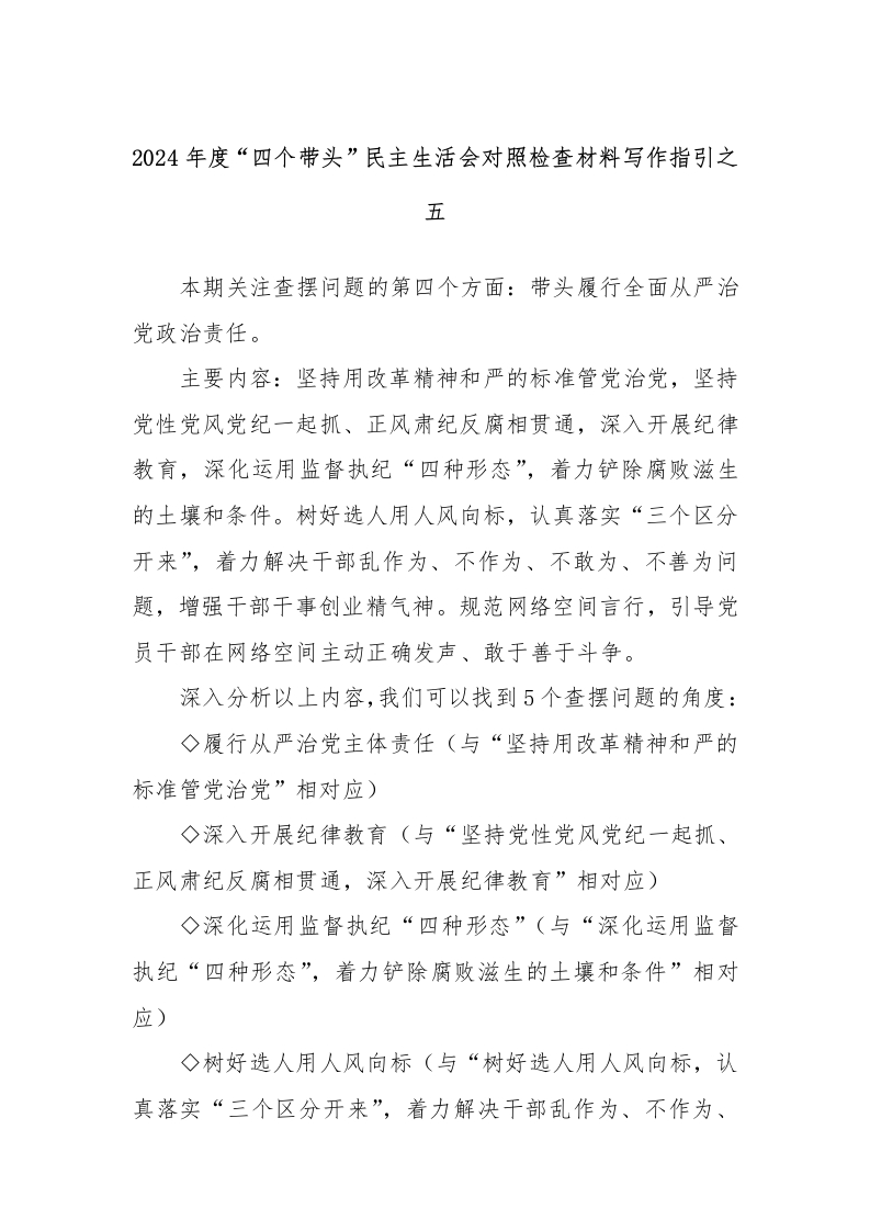 2024年度“四个带头”民主生活会对照检查材料写作指引之五