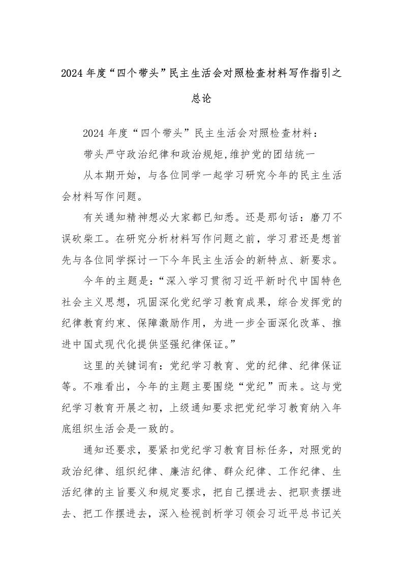 2024年度“四个带头”民主生活会对照检查材料写作指引之总论