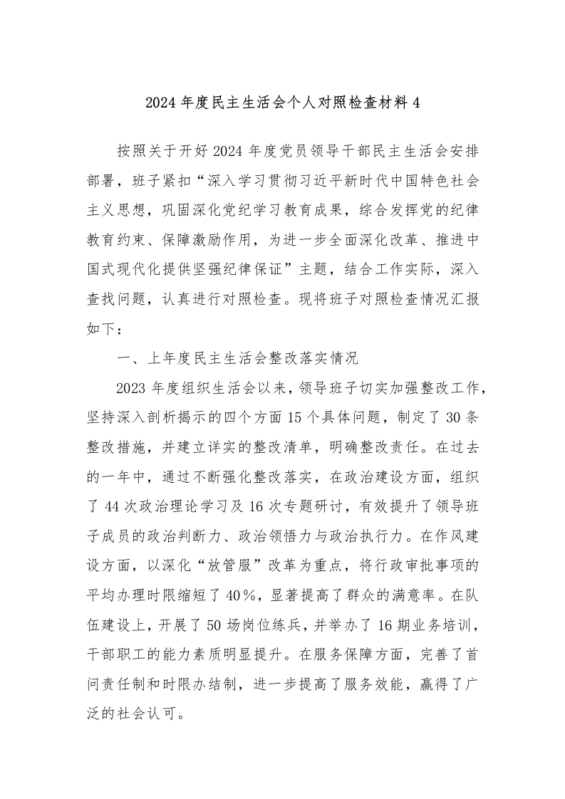 首页公文大全民主生活会2024年度民主生活会个人对照检查材料4