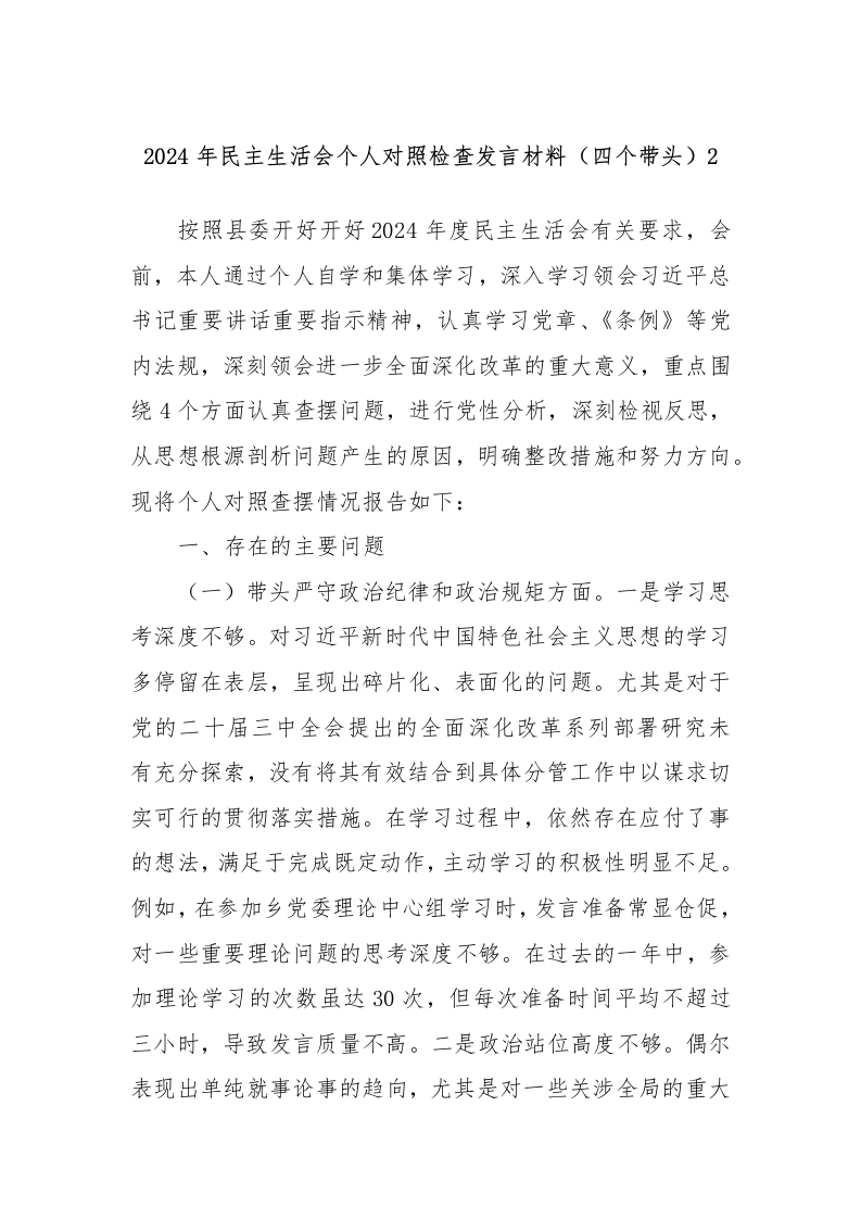 - 2025-01-23 21:32:50 2024年县级领导干部民主生活会个人对照检查发言材料