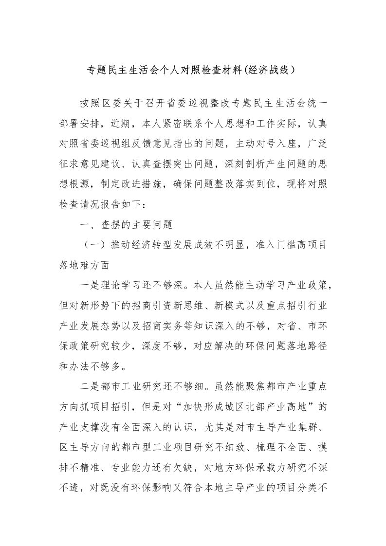 首页公文大全民主生活会专题民主生活会个人对照 检查材料 (经济战线)